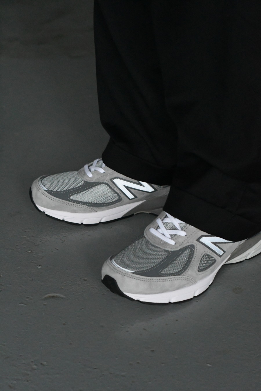 ブランドのヘリテージカラーであるグレーで仕上げた一足。